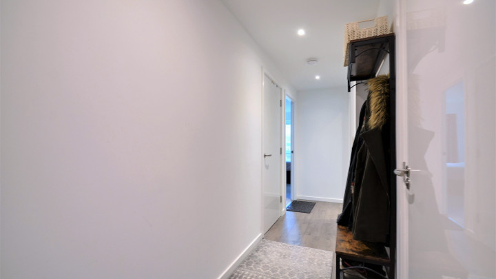 - Entrance: Hallway with large utility room and video entry phone system.