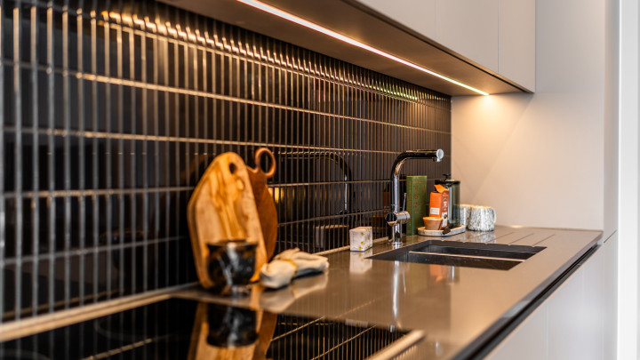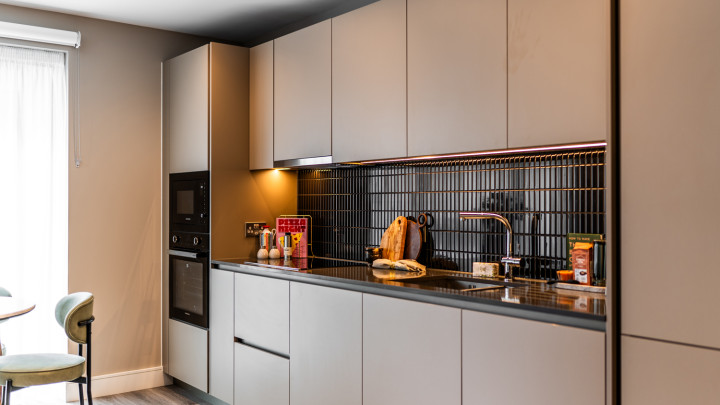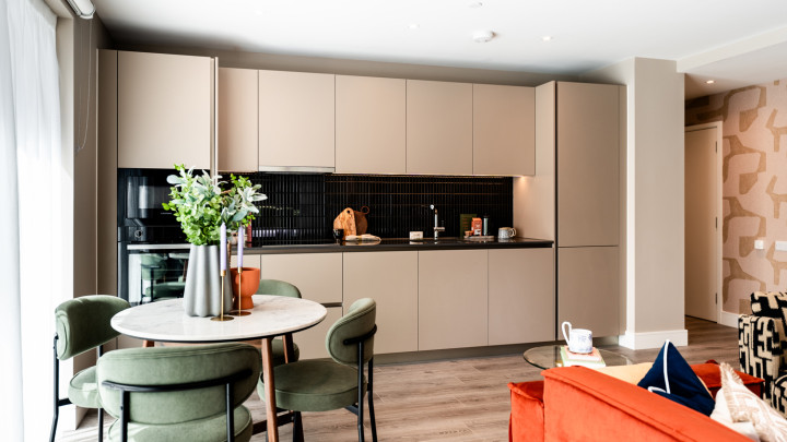 Apartments are ready to move into, featuring open plan living space leading to a private balcony or terrace, integrated appliances and underfloor heating. All apartments have access to the podium garden.