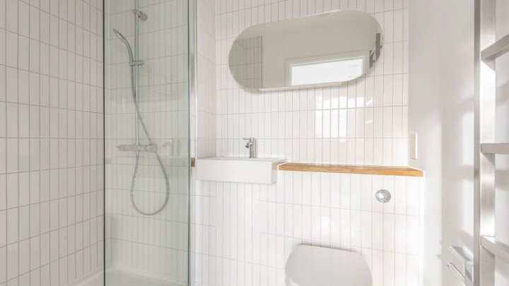 The apartment building contains 15 spacious apartments, many with superb views to the south. Each of these has a well-planned living area with high ceilings and open, light-flooded spaces. There are recessed balconies so the outstanding views can be appreciated year-round. We have used natural materials such as timber parquet flooring in living areas, and oak handles on the matt grey kitchen units. Plenty of secure cycle parking is provided.