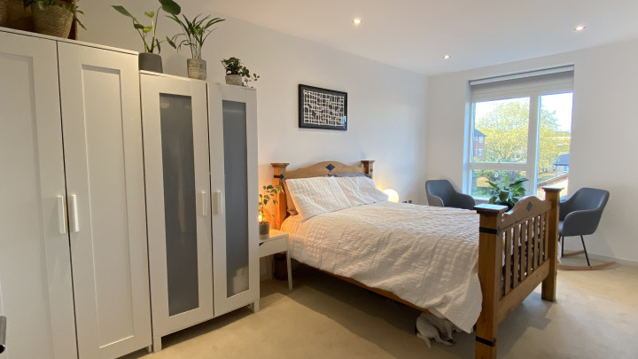 The south facing balcony, off the kitchen dining area, provides ample space to entertain/outdoor eating and planting, with views of the communal private garden, and a floor to ceiling window giving plenty of light throughout the day.