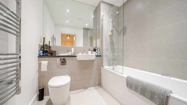- Family bathroom with shower over bath