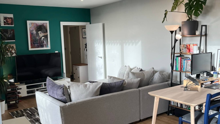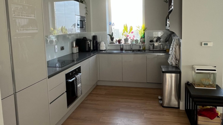 Situated in a sought-after modern development, this beautifully presented one-bedroom apartment offers a contemporary open-plan layout, perfect for modern living. The spacious reception area features floor-to-ceiling windows, flooding the space with natural light and providing seamless access to a private balcony with direct views of the AFC Wimbledon stadium pitch—a truly unique backdrop. The stylish kitchen is fully integrated, while the double bedroom benefits from a fitted wardrobe, ensuring ample storage. A sleek modern bathroom, central heating, and high-quality finishes throughout complete this impressive home.