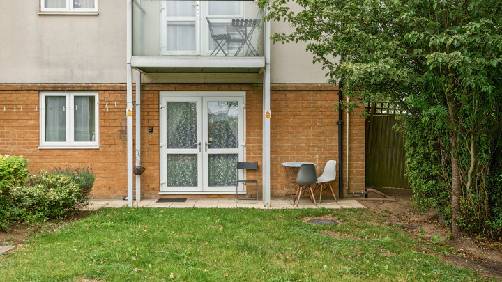 The apartment is on the ground floor, offering residents a private patio and an allocated parking spot.