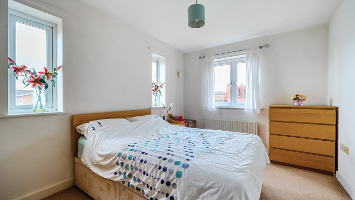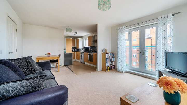 This property comprises of two double bedrooms, open plan lounge with space for dining area and access to a Juliet balcony, and fitted kitchen with appliances.