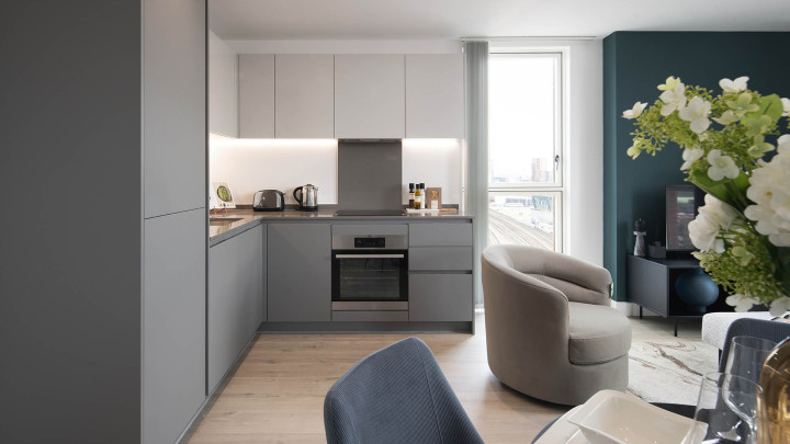 New Mansion Square Lumiere Edition is a new collection of 1-bedroom apartments available through Shared Ownership in Battersea, SW8.