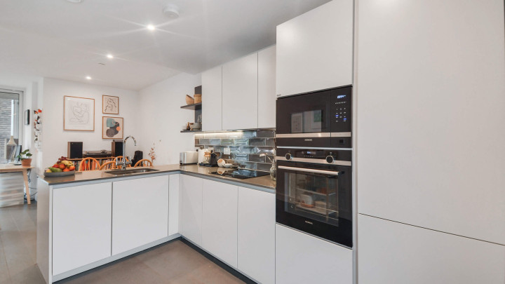 This beautifully finished apartment offers light-filled interiors with modern design touches throughout. The open-plan living space flows seamlessly into a sleek, fully fitted kitchen, creating an ideal setting for both everyday living and entertaining. The generously sized bedroom provides calm retreats, while high-quality finishes and thoughtful layouts enhance both style and practicality. Large windows bring in natural light, adding to the sense of space and connection to the surrounding city.