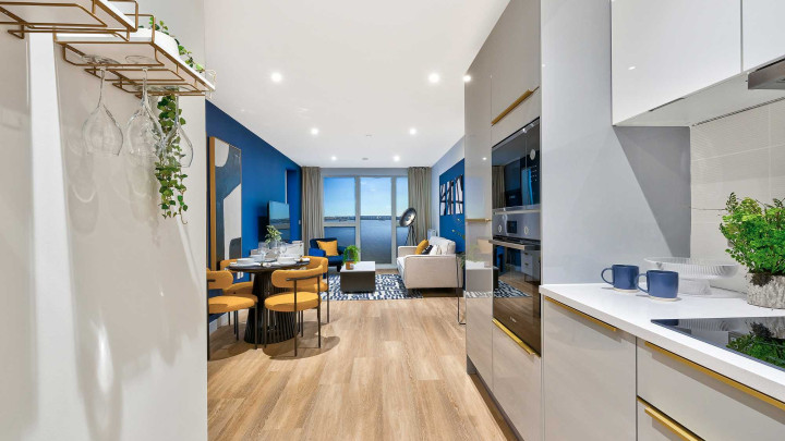 The final phase of one, two and three-bedroom riverside apartments for sale at Royal Albert Wharf. Available for outright sale and shared ownership from NHG Homes. Now at the final phase of construction with the last chance to buy new at this award-winning 15 year regeneration in London’s Royal Docks. Leading onto the Thames Path with many apartments benefitting from direct river views, homes are set around a landscaped garden square and riverfront gardens and include the use of a resident’s concierge.