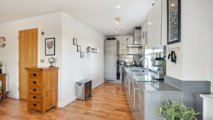 Located in a quiet cul-de-sac in the heart of Pinner, Snowdrop Mews is a stylish and modern 1-bedroom apartment offering bright, open-plan living. The spacious living area features floor-to-ceiling windows, flooding the space with natural light, while the sleek kitchen comes fully fitted with integrated appliances. The double bedroom includes a built-in wardrobe, and the contemporary bathroom is finished to a high standard. The property also benefits from a private balcony, central heating, allocated parking, secure bike storage, and access to a communal terrace – ideal for enjoying sunny days or relaxing outdoors.
