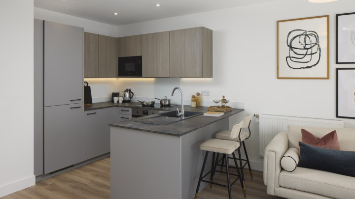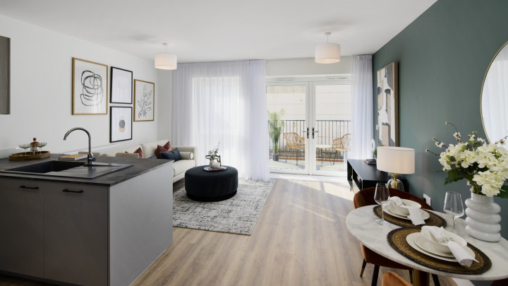 Situated on the 1st floor, discover this 1-bedroom apartment offering the perfect balance of space and style. Step into an open-plan living, dining, and kitchen area, which features modern fittings and integrated appliances throughout, with the added luxury of a private balcony. This apartment also benefits from ample storage with a separate utility cupboard. The bathroom boasts contemporary touches with large format tiles and a stylish vanity unit, while the master bedroom is carefully designed, offering a work-from-home area and plenty of space for a wardrobe.