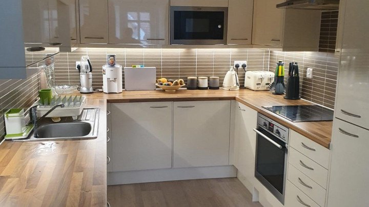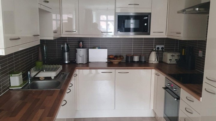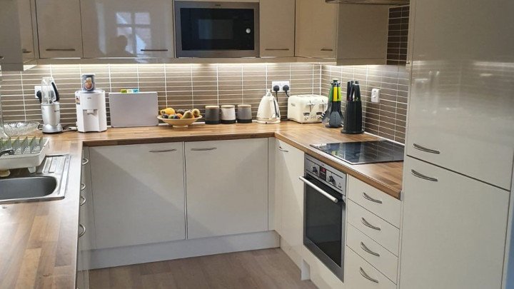 Fully Integrated Appliances including fridge/freezer, washing machine with dryer, microwave, electric hob, and oven