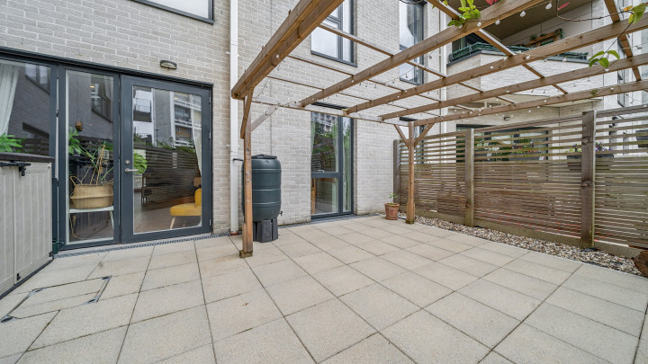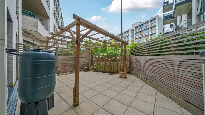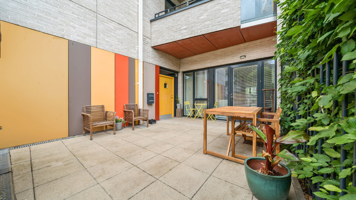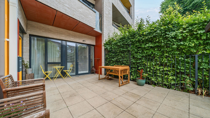 Outside, there are two patios at the front and at the back of the flat, with different exit points. Communal grounds and areas, and bike storage. Perfect for couples and small families.