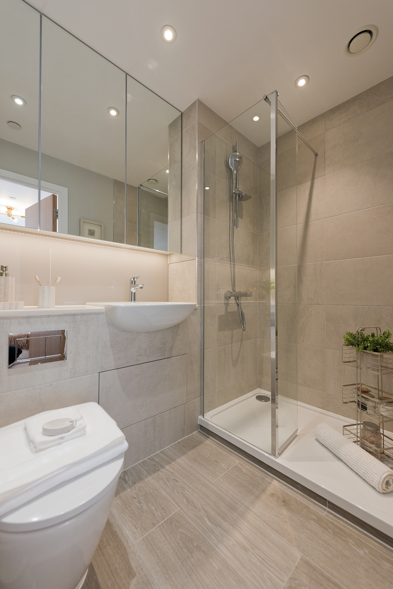 Bathroom - the beautiful, designed bathrooms offer a calming retreat, with high quality tiling, sleek vanity units, and modern chrome fixtures.