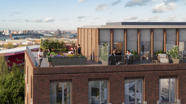 In addition to the outdoor amenity space on the ground floor, there is a landscaped roof terrace on the upper floor with a picnic table and seating as well as spectacular views of the city and Canary Wharf. Whether you're doing a HIIT workout or having a drink with neighbours after work, this space is an urban retreat.
