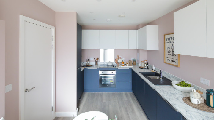 The apartments enjoy spacious open-plan living and dining areas featuring premium flooring and kitchens in on-trend indigo and white. Chic floor-to-ceiling French windows onto balconies, terraces or winter gardens, provide plenty of light. Bedrooms include plush grey wool-mix carpets, and stylish sliding wardrobes. Bathrooms are also designed to ensure every element of your new pad is perfect.