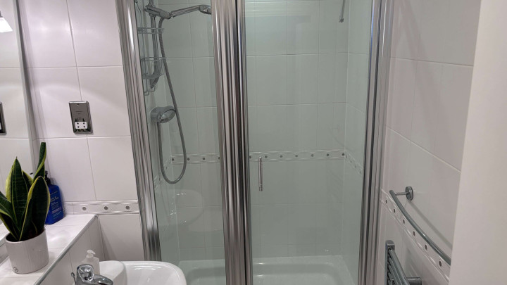 En-suite: Towel radiator. Extractor fan. Tiles walls and floor. Suite comprising: Shower cubicle. Pedestal wash hand basin. Low level flush W.C. Bathroom Towel radiator. Extractor fan. Tiled walls and floor.