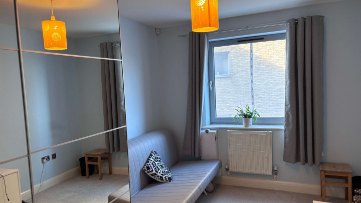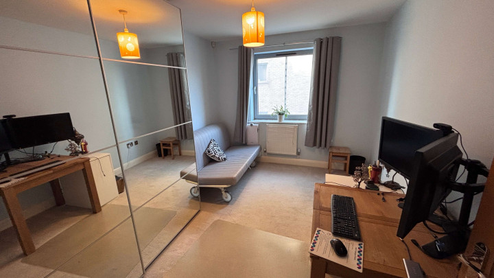Bedroom 17'0” x 10' 5" (5.2m x 3.2m) Double glazed window. Radiator. Carpet. Built in wardrobe.